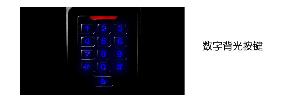 三种开门方式:卡,密码,卡+密码 夜光键盘:夜晚也能操作键盘 韦根接口:WG26输入/输出 有门铃按键和接口:按键与电路隔离,可外接任何门铃
