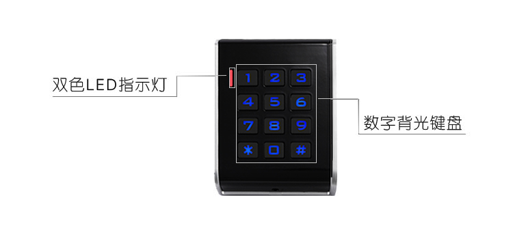 三种开门方式:卡,密码,卡+密码 夜光键盘:夜晚也能操作键盘